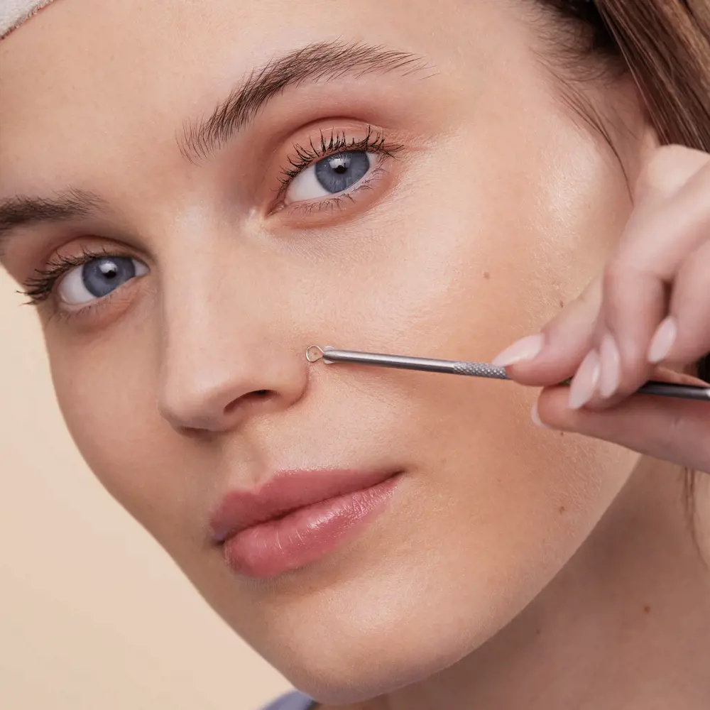 از انتهای سوراخدار استفاده کنید. سوراخ را مستقیماً روی جوش سرسیاه فشار دهید تا به آرامی مواد زائد خارج شده و منافذ باز شوند.