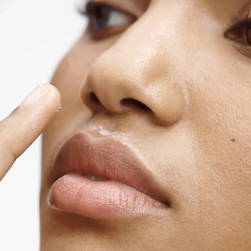 ۲. به اندازه یک دانه برنج از محصول را برای هر ناحیه زیر چشم و خط لب بردارید.